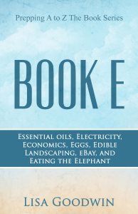 Here is Book E of the Prepping A to Z book series. Essential oils, Electricity, Economics, Eggs, Edible Landscaping, Exercise, EBay, and Eating the Elephant.